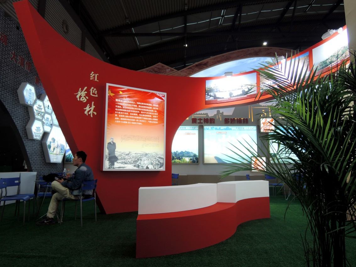 本届博览会中,榆林展区面积共计100平方米,以红、绿、黄、蓝为基色,代表“红色榆林、生态榆林、多娇榆林”,融合大漠边塞驼城、九曲黄河穹顶、红色印记飘带以及“榆林蓝”等造型和元素,对展区进行整体规划设计。同时,结合声、光、电、互联网设备同步灯箱图片展示、视频展播、民歌演唱、实物展示、二维码扫描等,全方面、多角度的让进馆的参观者充分了解感悟“丝路驼城、多娇榆林”的别样风情。榆林市旅游局局长赵旭东给予了高度评价:“这次我市获得了最佳展台奖,用卓越而动感的方式,为游客展示出专业水准和高品质的品牌形象,在场内与线上互动,用智慧和力量让更多的民众与美轮美奂的多娇榆林邂逅相遇。”